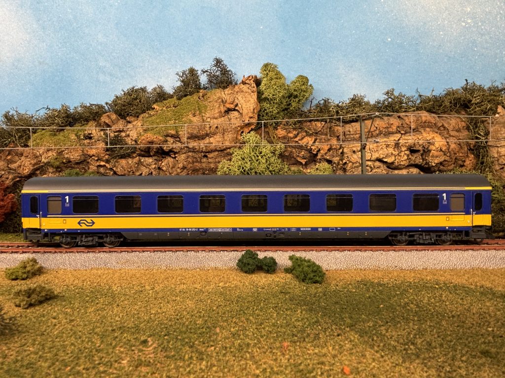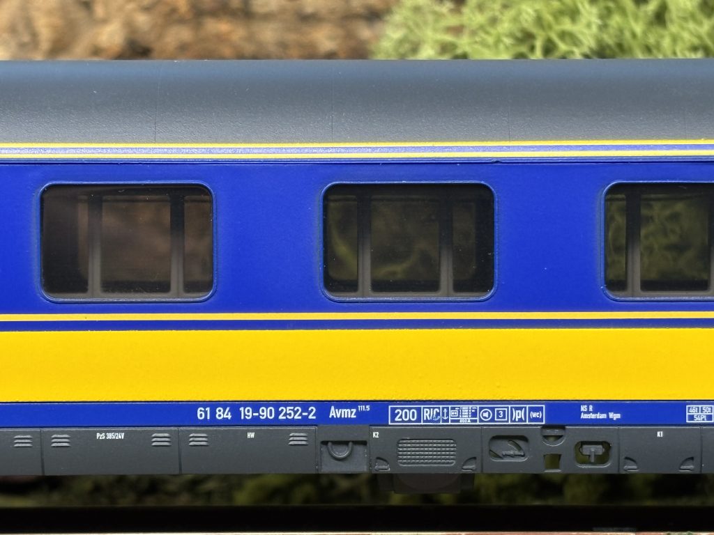 Modelo a escala: El modelo a escala reproduce con fiabilidad los coches Avmz 111.5 que pasaron de NS INTERNATIONAAL a NS REIZIGERS en el 2006 para usarse con los ICL alquilados a DB.