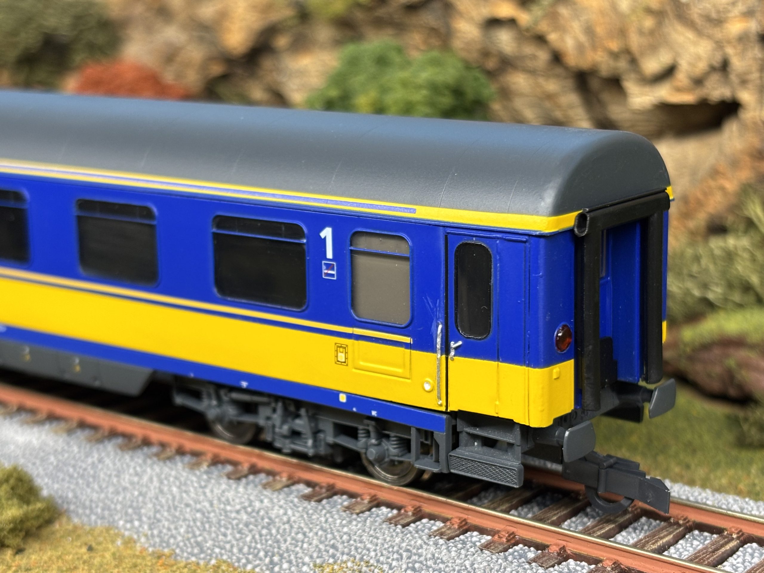 Modelo a escala: El modelo a escala reproduce con fiabilidad los coches Avmz 111.5 que pasaron de NS INTERNATIONAAL a NS REIZIGERS en el 2006 para usarse con los ICL alquilados a DB.
