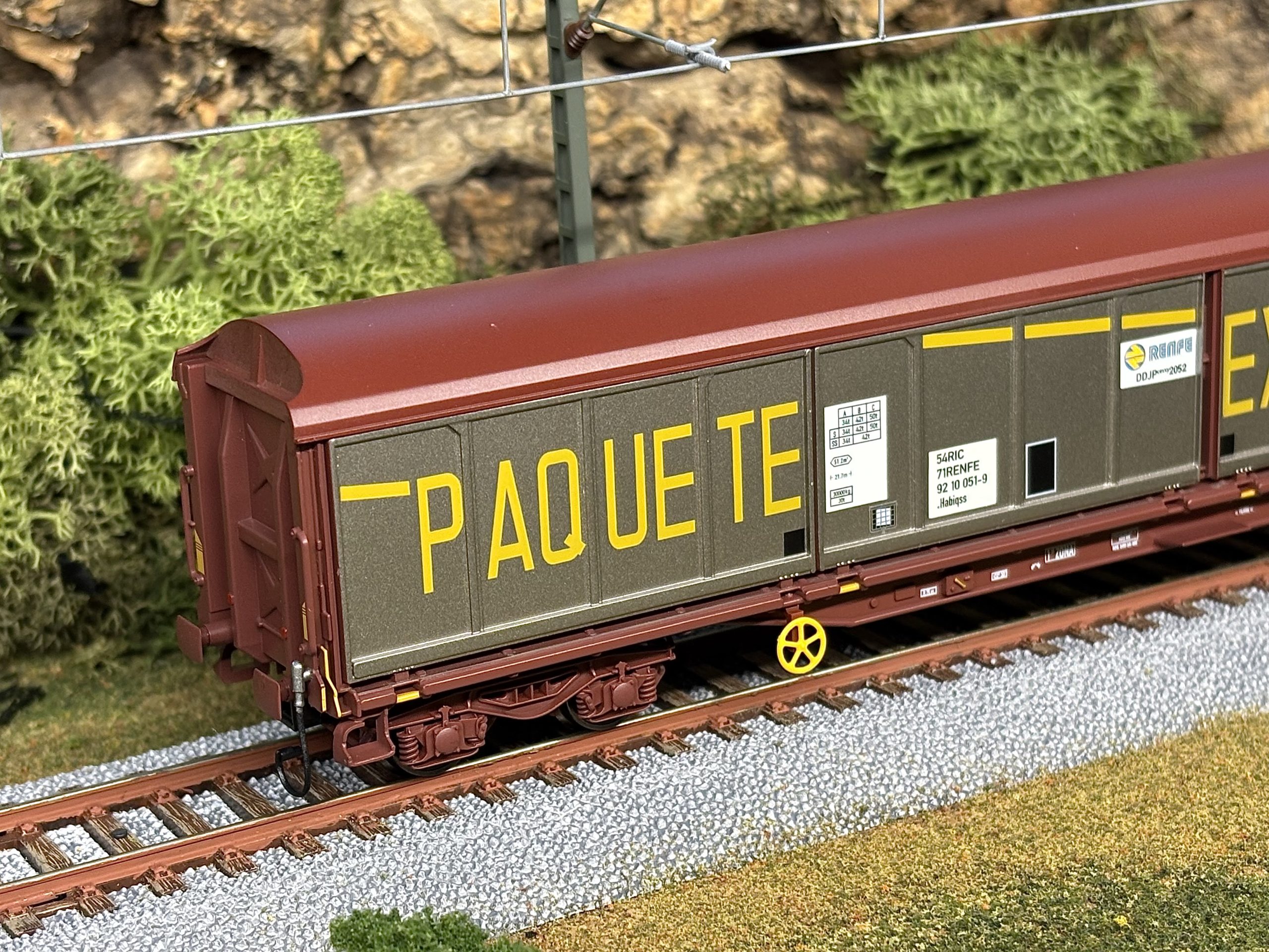 Época: Esta reproducción del furgón DDJP pertenece a la época IV del ferrocarril español ( Desde 1971 hasta 1991 ), según las normas NEM. Representa un furgón con la matricula DDJP, es decir anterior al 1988-1989 que es cuando RENFE cambia el sistema de matriculación y numeración, pasando al DJ2, cuando los furgones ya se empiezan a pintar en color rojo con chasis gris, con el nuevo anagrama «PAQUEXPRES«