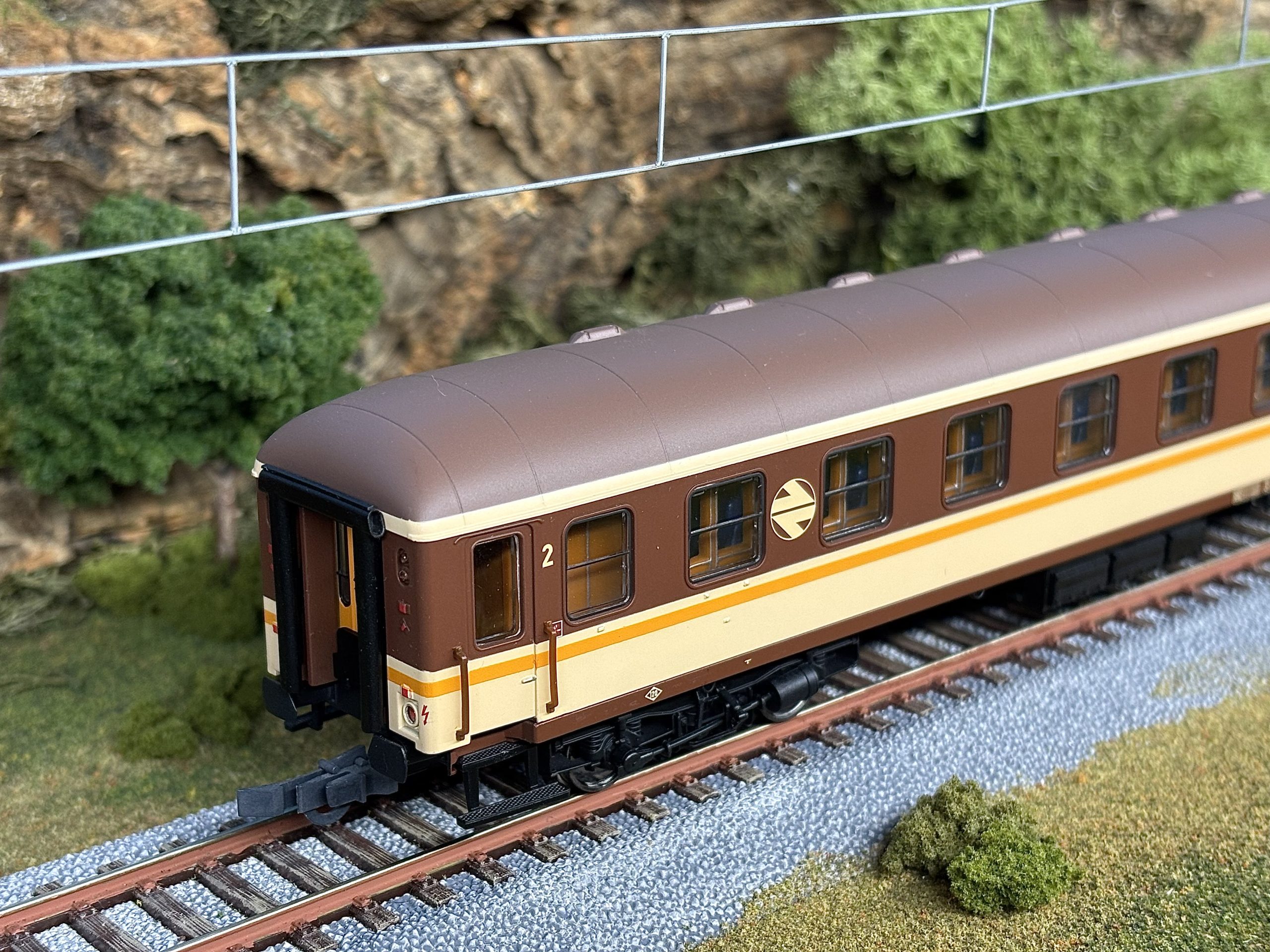 El modelo: ELECTROTREN reproduce un modelo UIC-X Serie 8000 de RENFE de segunda clase en librea «Estrella». Para realizar este modelo tomaron los moldes antiguos de RIVAROSSI de los coches UIC-X alemanes, y se pintaron en los colores «Estrella». Si bien es cierto que los testeros están modificados completamente para ajustarse a los coches reales. El techo, y los bajos son del modelo alemán. Curiosamente la línea del techo que marca la segunda clase debería de ser verde, pero en este modelo aparece en color crema, como ocurrió con algunas unidades en la realidad. Las tonalidades de los colores son mas que correctos, dando un aspecto muy agradable del modelo a pesar de algunas inexactitudes del diseño.