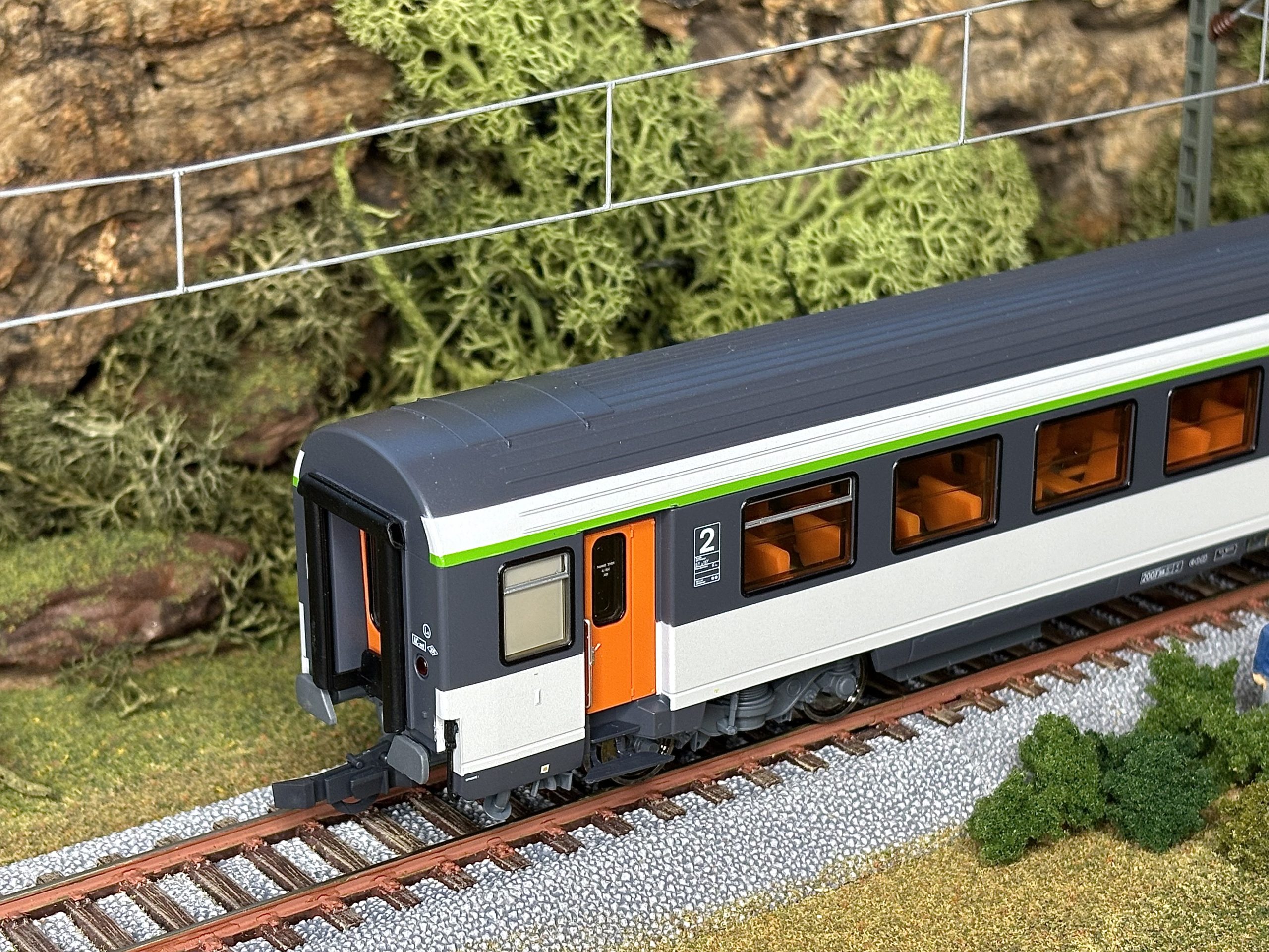 El modelo a escala: El modelo a escala propuesto por ROCO referencia 74533, es una replica exacta del modelo CORAIL tipo VTU francés de 2ª clase B11rtu de la SNCF, tanto en la caja, bastidor, bajos.. Con un excelente acabado y un rodaje muy fino.