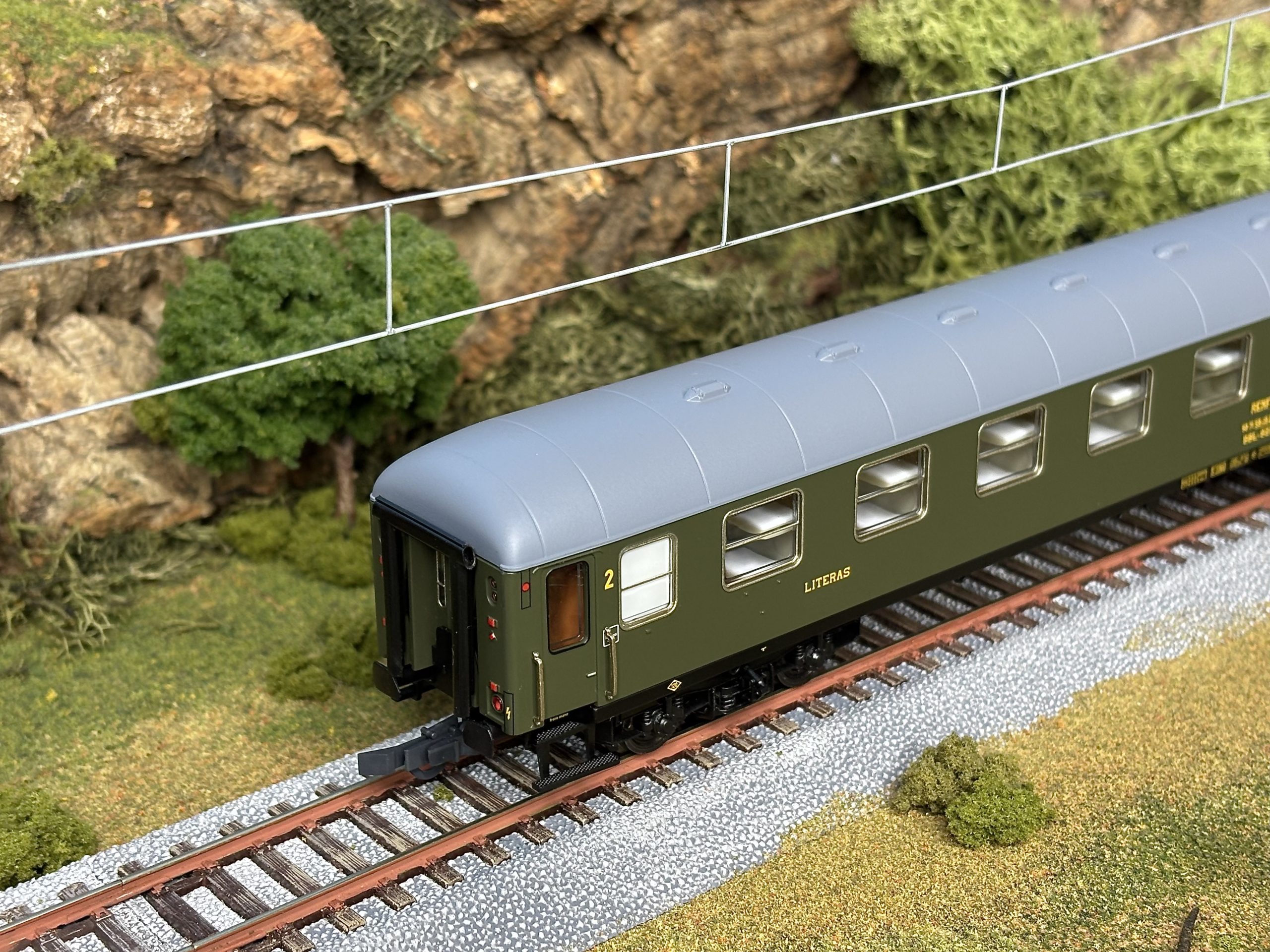 El modelo: ELECTROTREN HE4020-2 reproduce un modelo UIC-X Serie 8000 de RENFE de segunda clase literas en su librea original «Verde Oliva», con matricula RENFE BBL-8227 y matricula UIC 50 71 59-19 227-1. Pertenecen a la remesa de 15 coches de segunda clase de 10 departamentos que se transformaron en literas entre el 1974-1975. Este coche lleva el interior de literas en posición día, es decir, sin montar las literas. Para realizar este modelo tomaron los moldes antiguos de RIVAROSSI de los coches UIC-X alemanes, y se pintaron en los colores «Verde oliva» de RENFE. Si bien es cierto que los testeros están modificados completamente para ajustarse a los coches reales, el techo, y los bajos son del modelo alemán, el interior se ha modificado para albergar las literas y los departamentos. Las inscripciones si que son correctas y legibles. Las tonalidades de los colores son mas que correctos, dando un aspecto muy agradable del modelo a pesar de algunas inexactitudes del diseño.