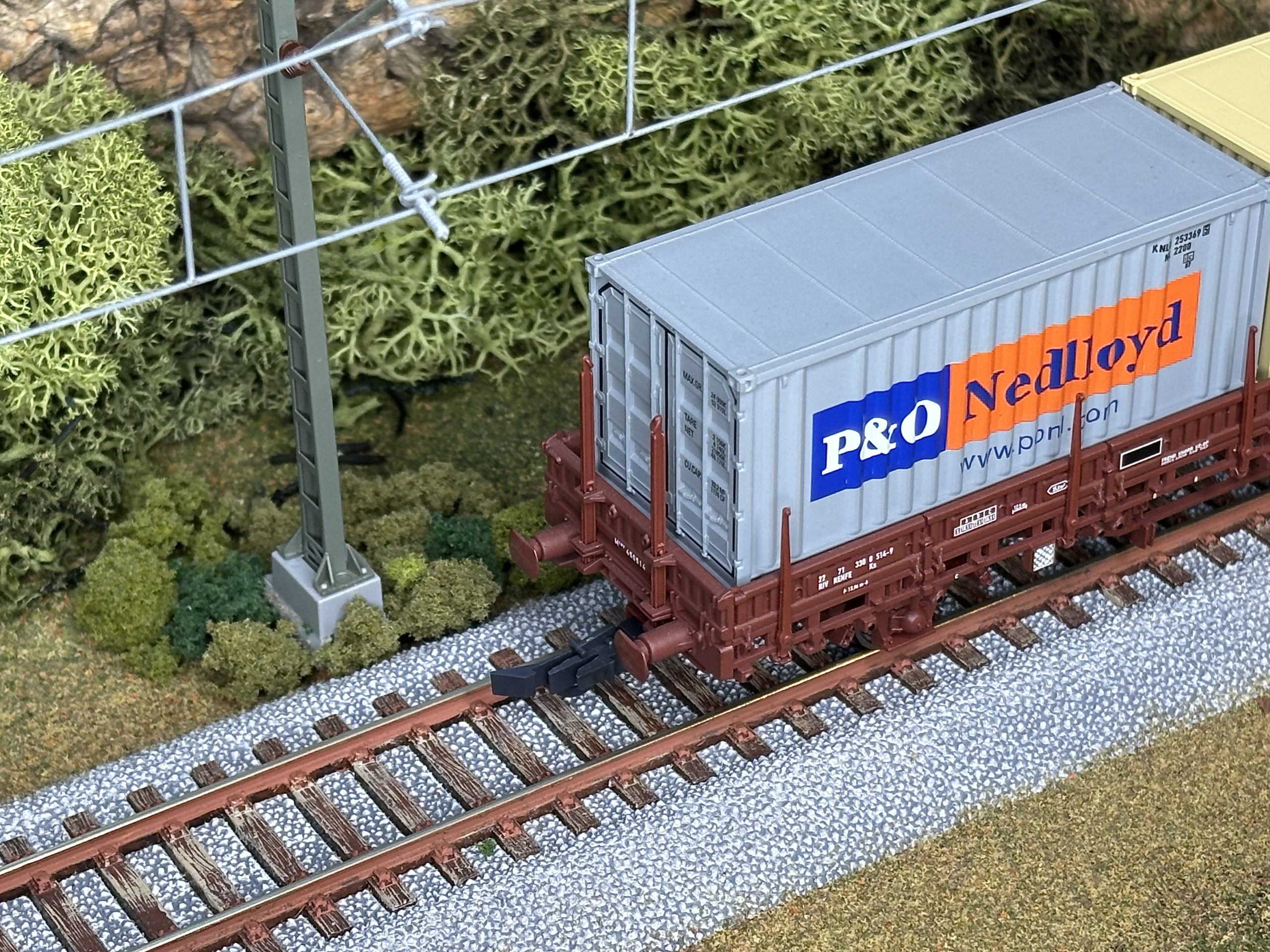 El modelo a escala: el vagón ELECTROTREN 1446K reproduce fielmente un vagón plataforma de teleros RENFE de la remesa que se compra a TRANSFESA. La matrícula M-450514 es correcta, al igual que las medidas, los detalles y los bajos del vagón. El modelo está muy bien pintado y la tampografía es correcta y bien aplicada. Esta unidad lleva  la matrícula UIC 22 71 330-0 514-9, y la carga aplicada de containers, es muy dudosa. Desafortunadamente, esta numeración es la misma de la referencia ELECTROTREN 1420, de los años 90.
