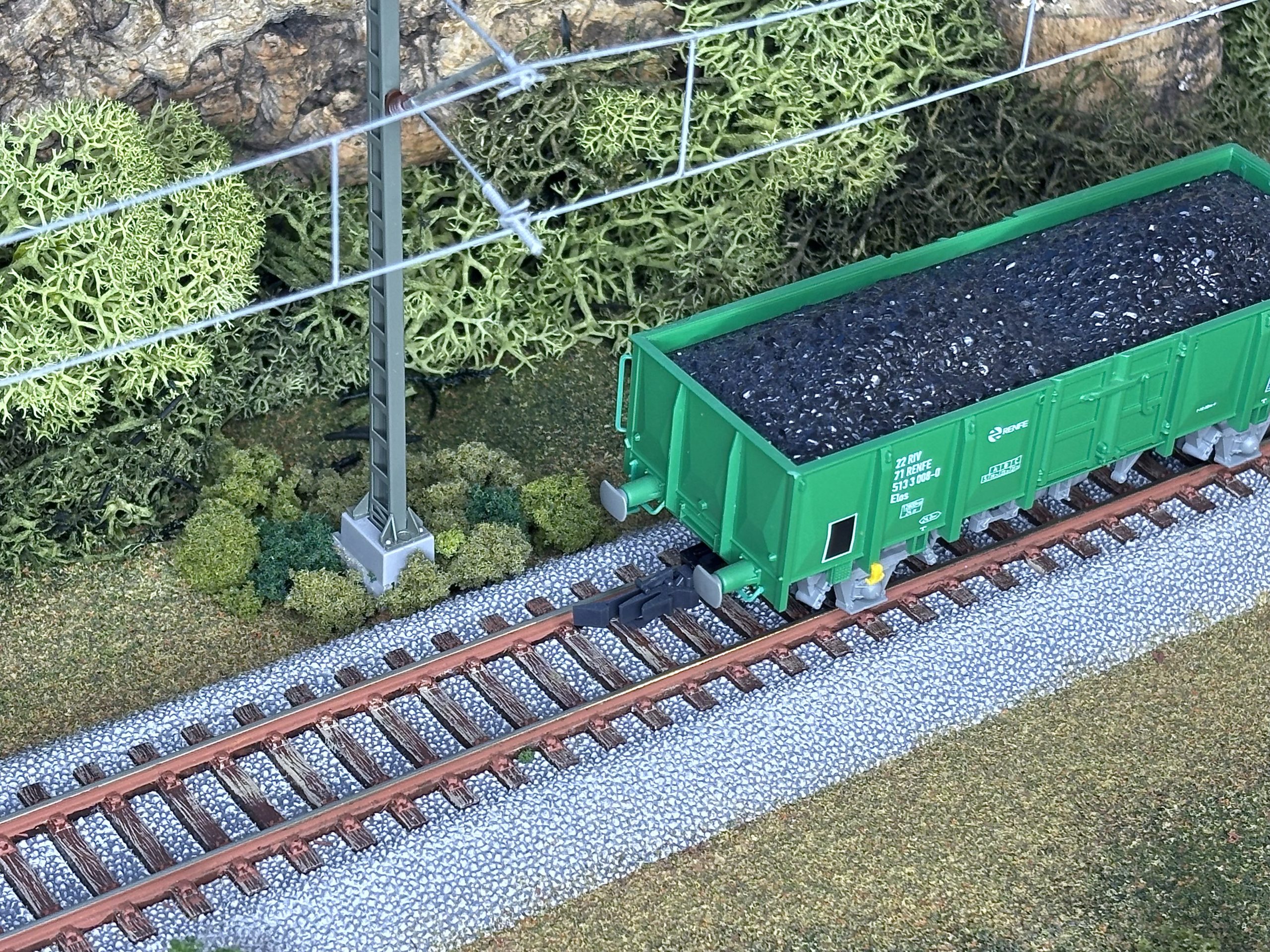 Modelo a escala: el vagón ELECTROTREN 1257 reproduce fielmente un vagón abierto Serie 390000 de RENFE, Tipo Elos con matricula UIC 22 71 513-3 008-0 en la época V. Los detalles de los bajos del vagón, las medidas y la tampografía es mas que correcta, por el contrario la carga aplicada, no es correcta, ya que en esta época, nunca se usaron estos vagones para la carga de carbón.